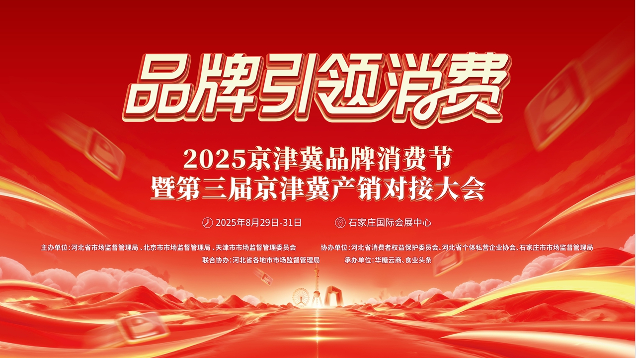 聚勢(shì)同行·共啟新程。8月28-31日,在石家莊國(guó)際會(huì)展中心舉行2025京津冀品牌消費(fèi)節(jié)暨第三屆京津冀產(chǎn)銷對(duì)接大會(huì)。本次活動(dòng)由河北省市場(chǎng)監(jiān)督管理局、北京市市場(chǎng)監(jiān)督管理局、天津市市場(chǎng)監(jiān)督管理委員會(huì)主辦,華糖云商、食業(yè)頭條承辦。