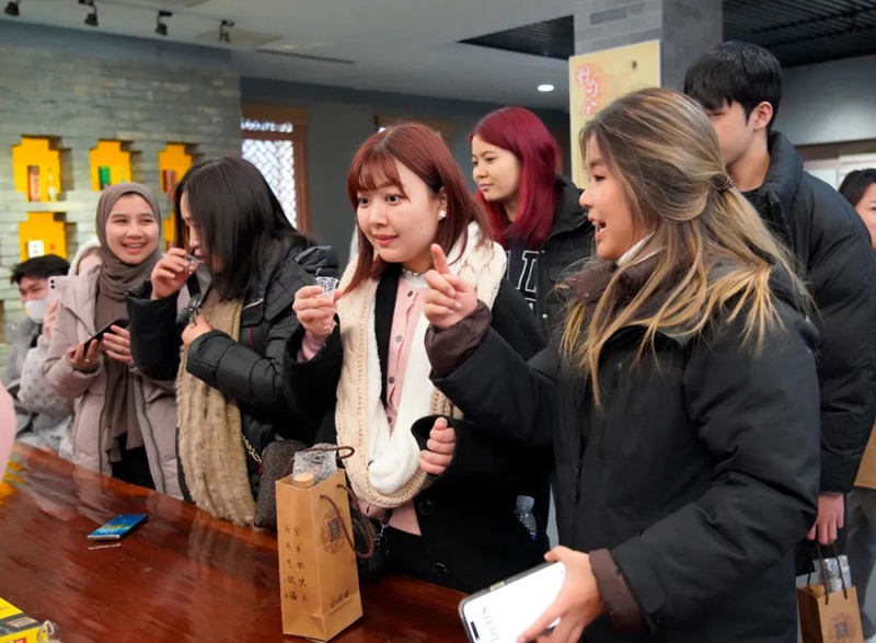 交流中,海外留學(xué)生們表達(dá)了對(duì)板城酒文化的濃厚興趣和對(duì)板城酒業(yè)與時(shí)俱進(jìn)高質(zhì)量發(fā)展的贊嘆。