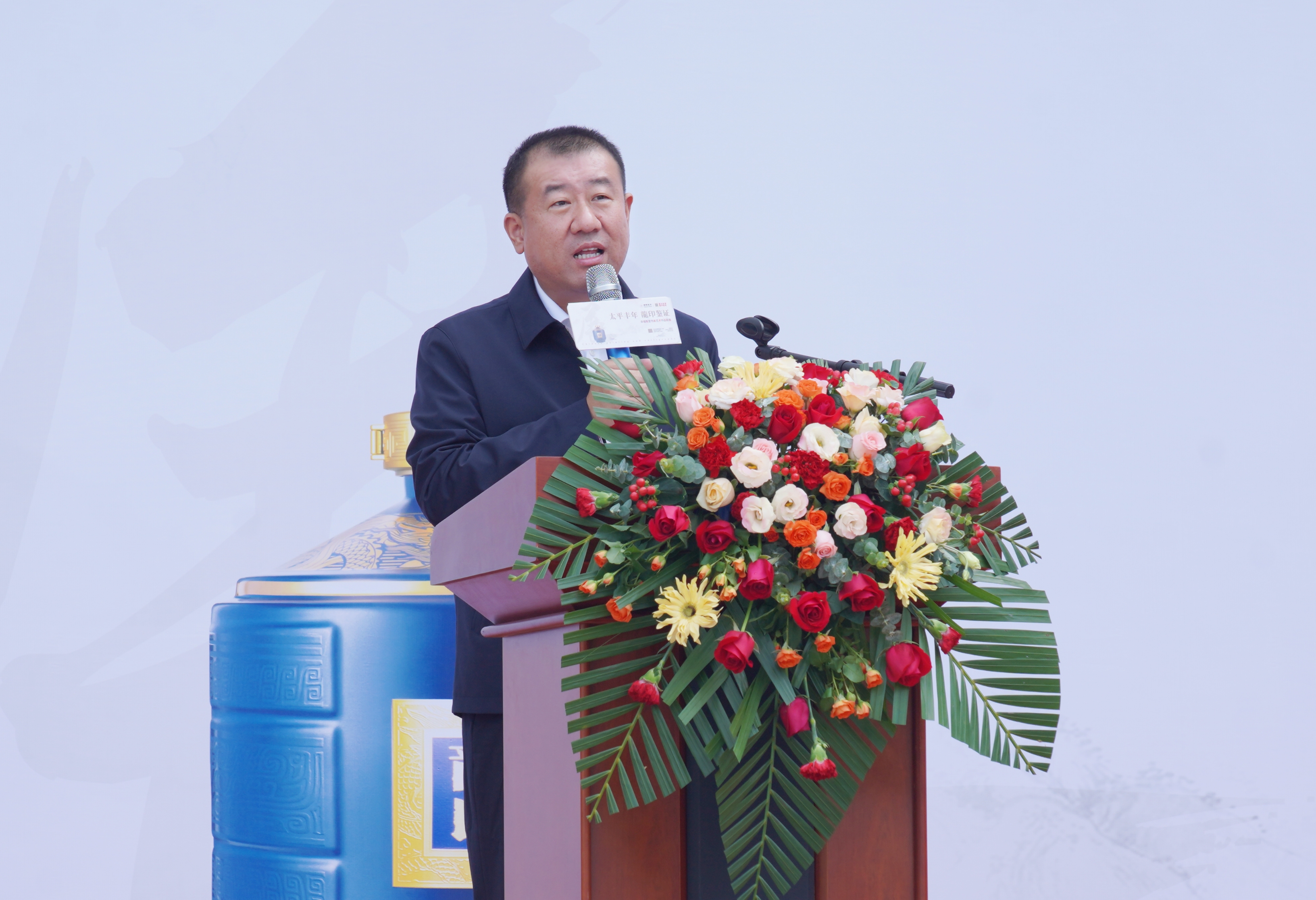 板城酒業(yè)黨委書(shū)記、總經(jīng)理張春生發(fā)表講話,書(shū)畫(huà)藝術(shù)歷史悠久,源遠(yuǎn)流長(zhǎng),是中華民族的文化瑰寶,在弘揚(yáng)民族精神,振興民族文化和滿(mǎn)足人民群眾日益增長(zhǎng)的精神文化需求方面發(fā)揮著重要作用。
